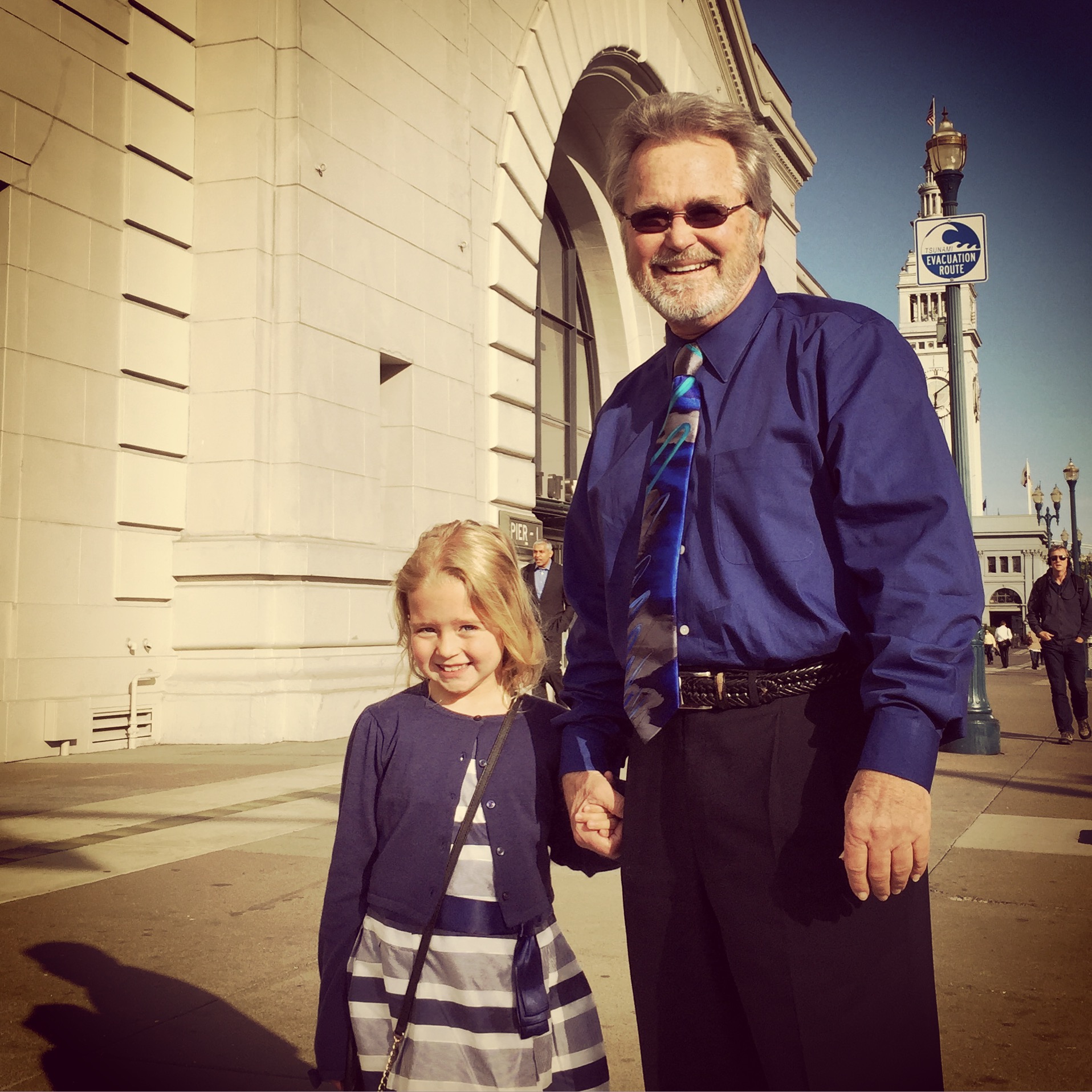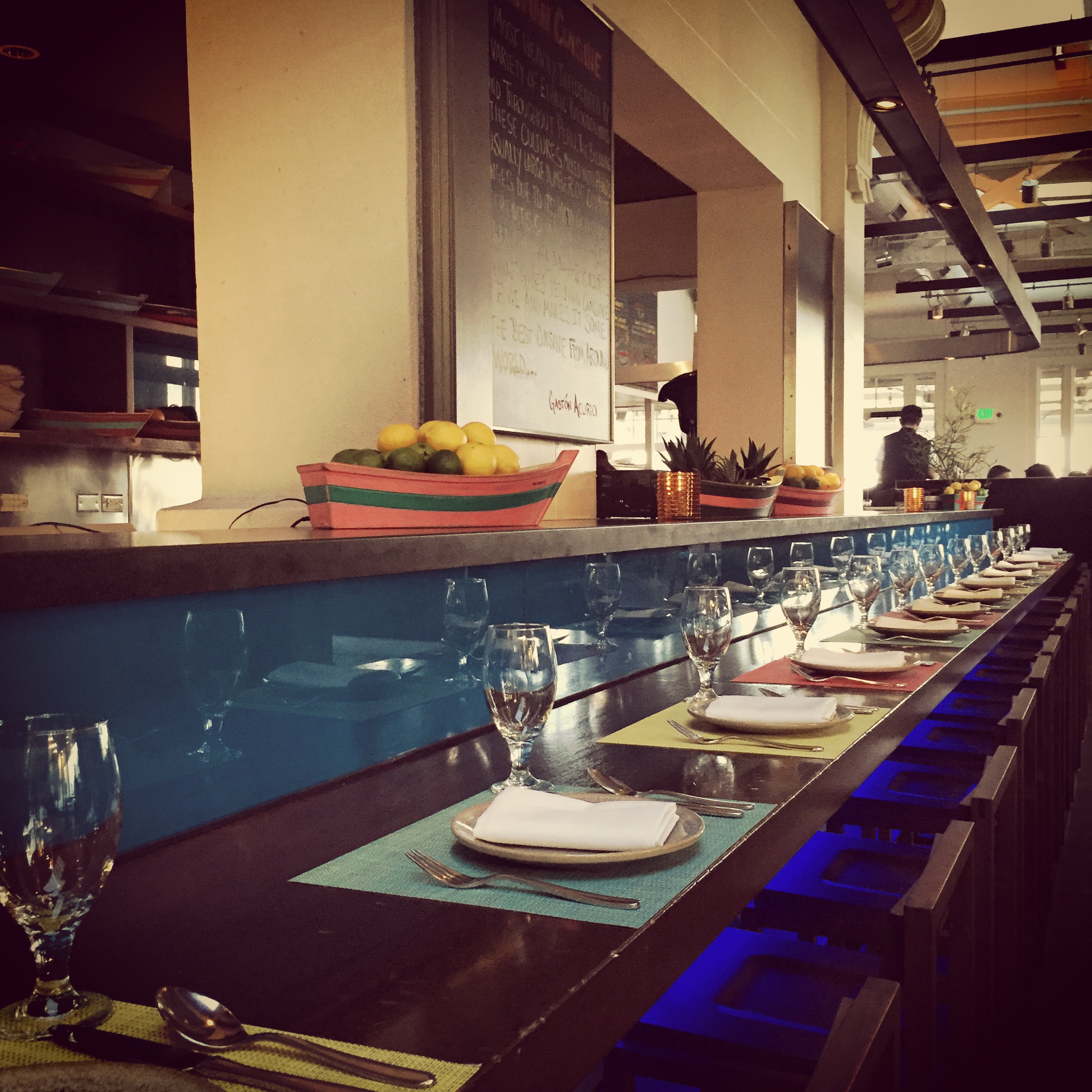 Hi kid foodies! Grandpa and I took my parents to La Mar for Grandpa Party Night to try out some Purvian food. Grandpa and I wore blue, I grabbed my orange notebook, and we headed to the piers! I loved our giant booth, and even though there wasn’t a kids’ menu, I had no trouble finding something that I loved. Right when we sat down we got a big bowl of potato and banana chips! I love eating fish, and this place had lots of it, so I decided to try a Purvian pasta dish with scallops and shrimp. I thought it was delicious. But what did I really love? The pork belly that my dad ordered! I ate as much as he would give me (and then took a tiny bit more when he wasn’t looking). Take your parents here if you want to try some super yummy, Kid Foodie-approved seafood!