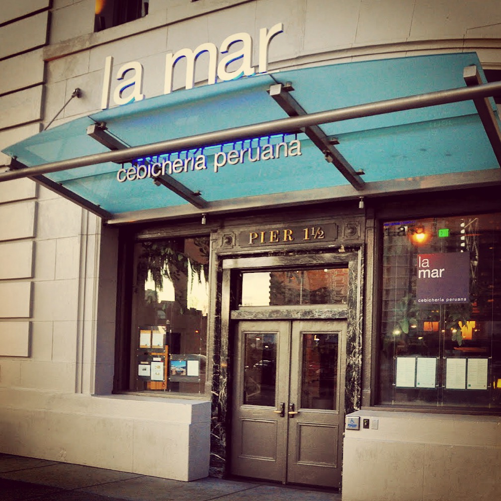 Peruvian food is one of my favorites, especially a delicious cebiche–and La Mar did not disappoint! We ordered three different cebiches, and they were nothing short of awesome–fresh fish (halibut was the fish of the day that day), huge Purvian corn kernels, zingy citrus, ginger, and wonderfully hot habaneros were just some of the flavors we got to experience. The cebiches where so inventive and fresh, with a great mix of textures–don’t miss them to start, and pair them with a crisp pisco sour (heaven)! We also adored the pork belly and the mahi.