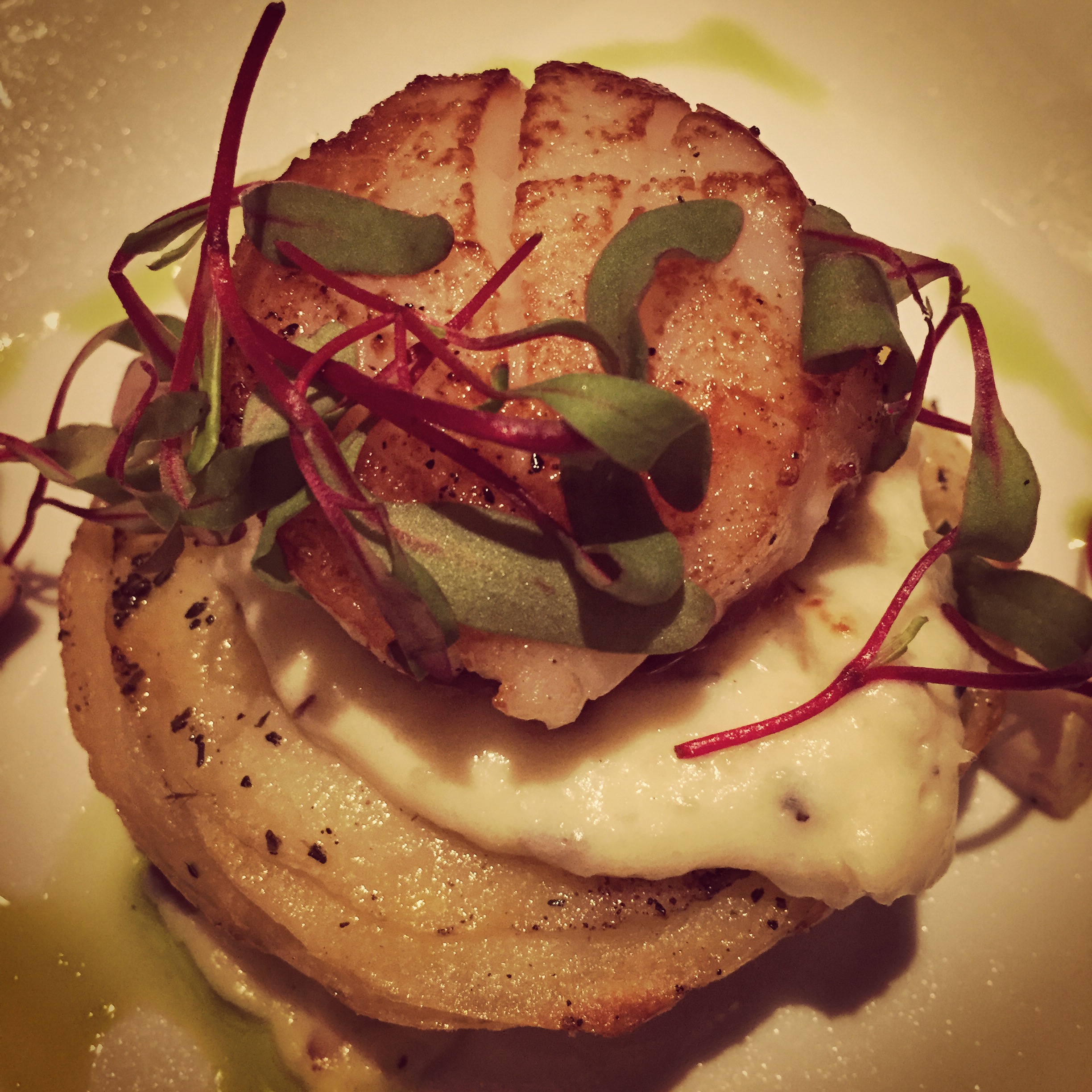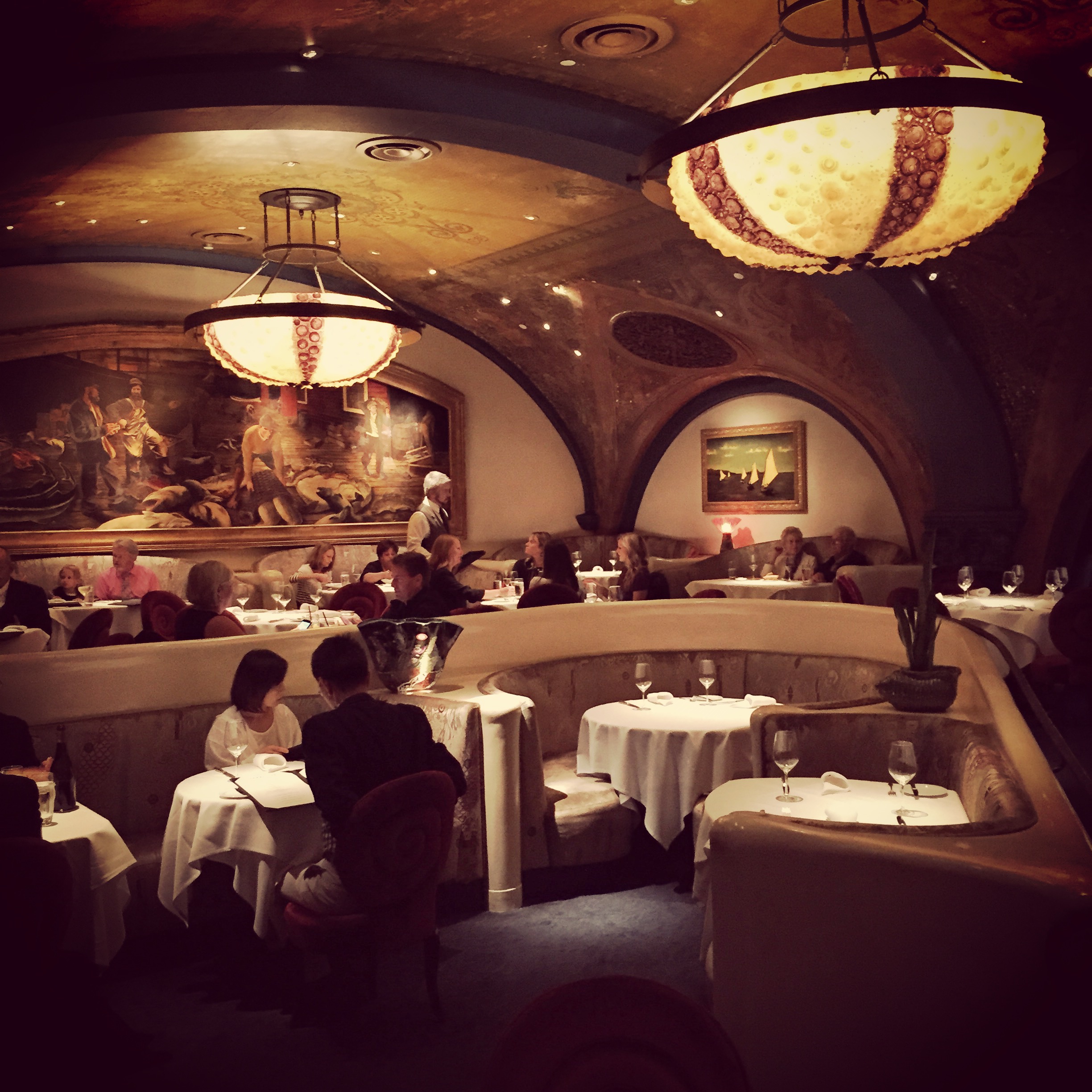 Ok, the scoop on the food. We started with a sampling of oysters on the half shell and adored the Kusshi, but all were delicious! We also loved the seared scallops, the Hawaiian Ono, and thought the Maine Lobster with sweatbreads was over the top with rich deliciousness! The fish was beautiful and the preparation was inventive–and don’t leave without trying the nutella bar!